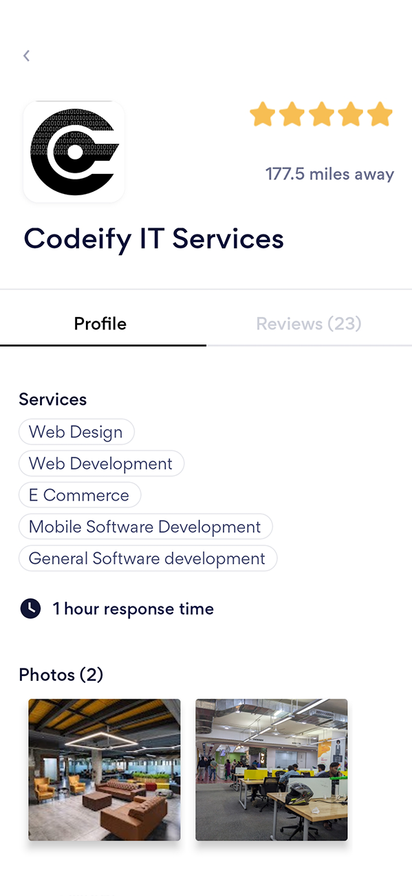 Business can create profiles, showcase their work, and connect with clients to receive inquiries.